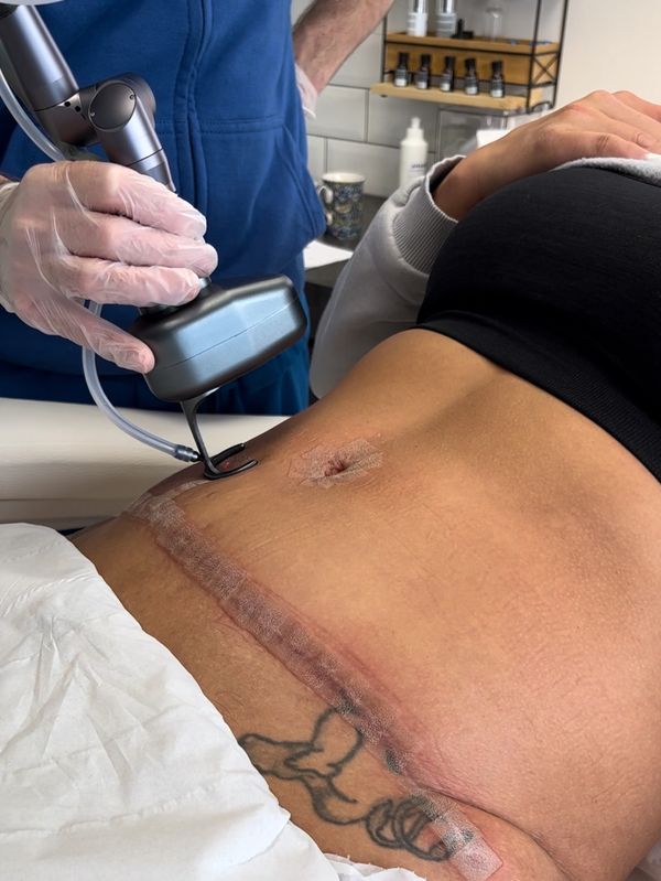 Body contouring using shockwave, Radio frequency and cavitation to reduce inches and slim down the waist , legs, arms & buttocks